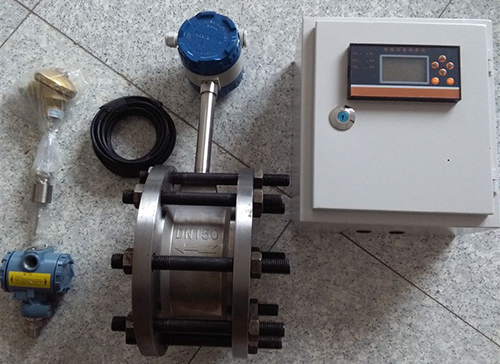 2、溫度補償一體型渦街流量計還帶有溫度傳感器,可以直接測量出飽和蒸汽的溫度并計算出壓力,從而顯示飽和蒸汽的質量流量。