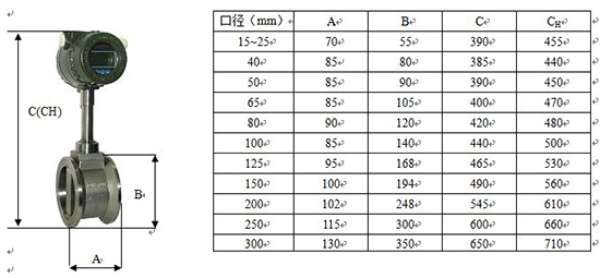 2、溫度補償一體型渦街流量計還帶有溫度傳感器,可以直接測量出飽和蒸汽的溫度并計算出壓力,從而顯示飽和蒸汽的質量流量。