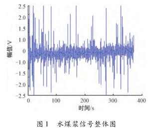 針對暖通中央空調管道水流量計測量水煤漿時出現較大波動,甚至回零這一問題,特去某煤化工企業甲醇分公司進行現場數據采集。該公司所使用的對置式四噴嘴氣化有4個噴嘴,噴嘴管道口徑為125mm,管中水煤漿流量基本穩定在19m³/h(流速約為0.48m/s)。每條噴嘴煤漿線上安裝了3臺暖通中央空調管道水流量計,每臺暖通中央空調管道水流量計由傳感器和變送器兩部分組成。選擇其中1條水煤漿管線上的1臺暖通中央空調管道水流量計進行數據采集,因為該臺暖通中央空調管道水流量計測量結果波動大,甚至出現回零的現象。將課題組研制的基于DSP的電磁流量變送器的信號線和勵磁線接到該電磁流量傳感器的電極和勵磁線圈上,組合成完整的暖通中央空調管道水流量計,進行水煤漿數據采集。使用的電磁流量變送器是以TI公司DSP芯片TMS320F28335為核心,采用高頻勵磁方案,其硬件主要包括勵磁控制系統和信號采集處理系統,具體的模塊有勵磁驅動模塊、信號調理采集模塊、信號處理控制模塊、人機接口模塊、通信模塊及電源管理模塊。信號調理采集模塊中的調理電路對一次儀表輸出的信號進行放大和濾波,截止頻率是2kHz,放大倍數約為230倍。通過NI公司USB-6216型號的數據采集卡進行數據采集,把調理電路的輸出端連接到數據采集卡的一個差分輸入端,并設置數據采集卡工作在差分的測量模式,設置采集卡的采樣頻率為10kHz。采集多組水煤漿信號數據,每組數據的時間長度為5min。