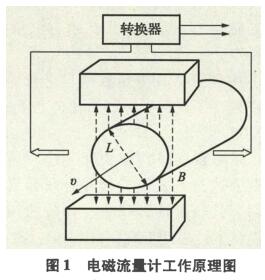 式中:Q為被測介質體積流量,m3/s ; Ue為直流式空調水流量計量表用來測量流體橫越磁場時所感生的電動勢,V; B為磁感應強度,T; L為電極間距,即測量管內徑,m;。為液體平均流速,m/s ; k為修正系數。