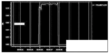 灌裝頭的*終出口部分為10~14mm的可更換縮口。通過(guò)縮口,可以產(chǎn)生背壓,一般縮口內(nèi)置蜂窩狀虹吸管,保證灌裝前后的管道滿管。從測(cè)試的流量波形上看,10mm的灌裝頭產(chǎn)生適當(dāng)?shù)淖枘嵝Ч髁壳€較穩(wěn)定。