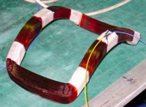 由此可見,尿酸流量計正常運行需要有穩定的磁場,而磁場正是靠傳感器線圈內的 勵磁電流來產生的。勵磁線圈如圖2所示。