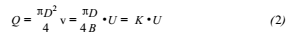 式(1)說明,導體在磁場內作切割磁力線運動,導體兩端產生的感應電動勢的大小與磁感應強度B成正比,與導體的長度D成正比,與導體運動的速度v成正比。由式(2)可知液體的體積流量與感應電動勢成正比,這就是尿酸流量計的設計原理。
