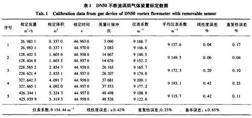 在實際標(biāo)定過程中,相同口徑的不斷流渦街與普通氫氣流量計在可測流量范圍、基本誤差、重復(fù)性等參數(shù)上基本一致,達到了設(shè)計和使用精度的要求。