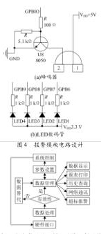 報警模塊由兩大部分組成,分別是蜂鳴器和LED 數碼管 。報警模塊采用 LR043JC211 液晶屏作為 LCD 顯示屏,其面板大小、分辨率和掃描頻率分別為4.2 英寸、480 ×242 ppi 和 60 Hz。數據接收處理模塊中設有液晶驅動寄存器,驅動接口與 LCD信號接口一一對應連接,而數據接口則與 3 個 LCD液晶數據接口相連。圖4 為報警模塊電路設計圖。