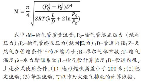 天津 LNG 設置兩座電磁流量計,單臺設計處理量 60t/h, 兩臺火炬并列運行,一用一備。自 LNG 儲罐及 BOG 系統來的超壓 BOG 經 PV 閥后進入火炬氣排放總管,經分液罐沉淀 BOG 中夾雜的液滴后進入火炬燃燒放空。 測水電磁流量計設置四級排放,具體設置如表 1。 2 火炬氣排放量計算方法根據水平輸氣管流量計算基本公式: