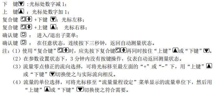 2.*大流量、*小流量和常用流量。推薦:常用流量應選擇在 1~3m/s 流速段內,如果不符,請用戶調整所選儀表的口徑規格。