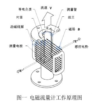 電磁流量計的測量原理是基于法拉*電磁感應定律:即導體介質在磁場介質中切割磁力線運動時在其兩端產生感應電動勢。如圖1所示,導電介質在垂直于磁場的非磁性測量管內流動,與流動方向垂直的方向上產生與流量成比例的感應電勢,電動勢的方向按“弗來明右手規則”,其感應電勢E為:E=KBVD式中:E---感應電動勢(與流速成正比);K---比例常數;B---磁場強度(線圈電感);V---測量管內介質的平均流速;D---電極間距(測量管的內徑)